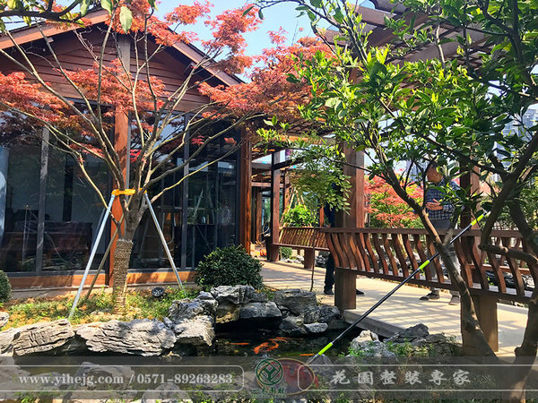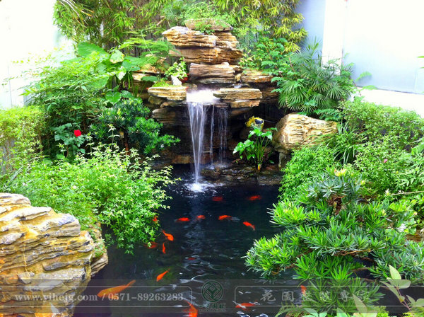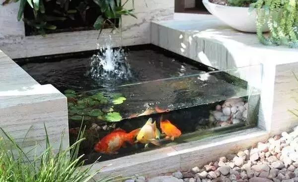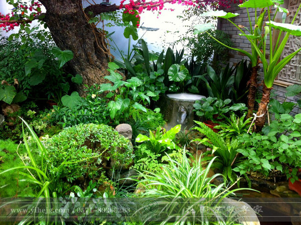 小空間,大水池,水里金魚嬉戲,岸上植物茂盛,陶罐上的流水更是畫龍點(diǎn)睛的奇妙。