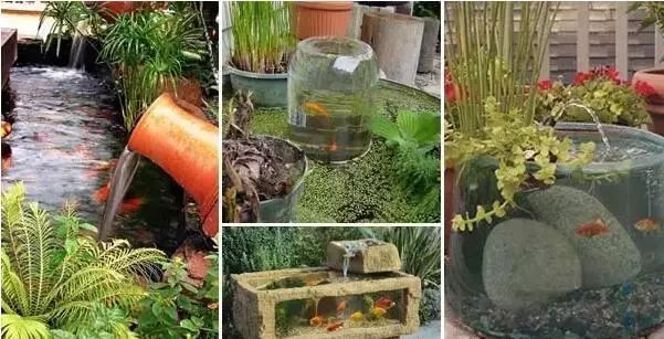 陶罐流水,青苔滿地,綠植點(diǎn)綴,魚兒歡鬧,狹小空間,也能造出一個(gè)迷你水族館。